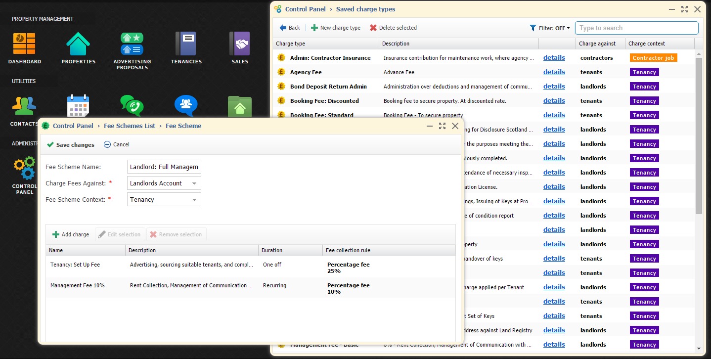 - Specific fee structures for Landlords, Tenants and Contractors