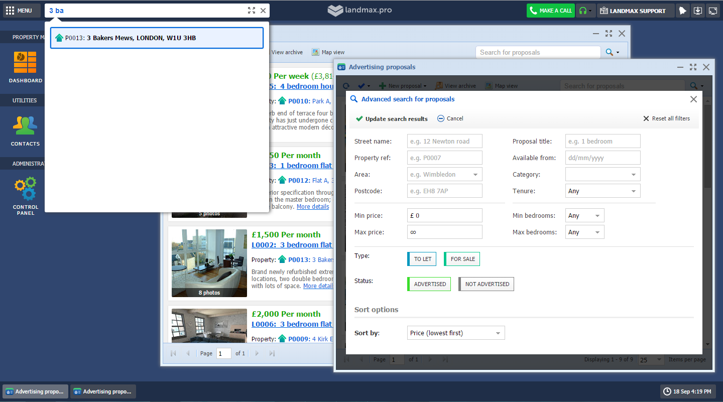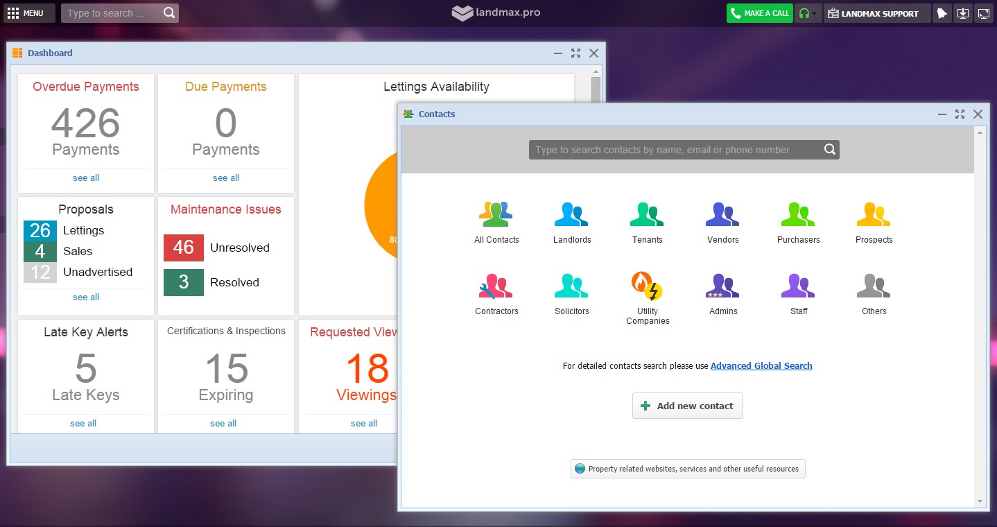 Manage everything from one screen, multiple windows or even multiple browsers. Landmax.pro is made for different types of working styles.