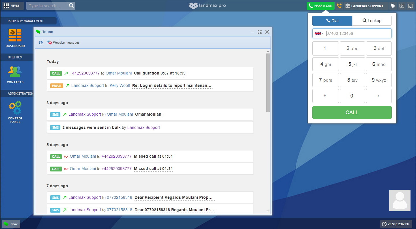 LMXPhone is an integrated telephony service that is set inside your Landmax.pro account. With our new phone feature, you and your staff can make and pick up calls from their desktops, without having to set-up any hardware.