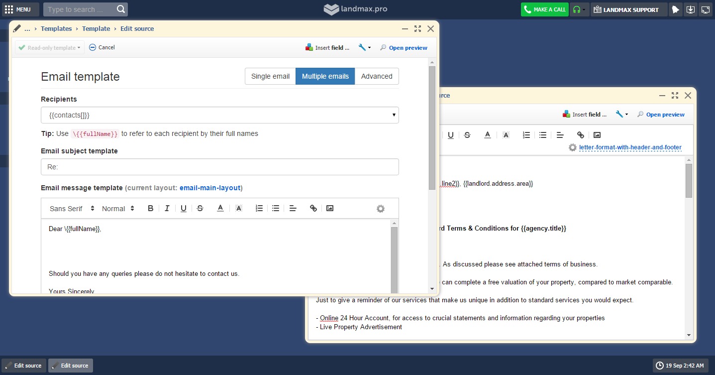 - Merge fields from landmax.pro to your chosen templates