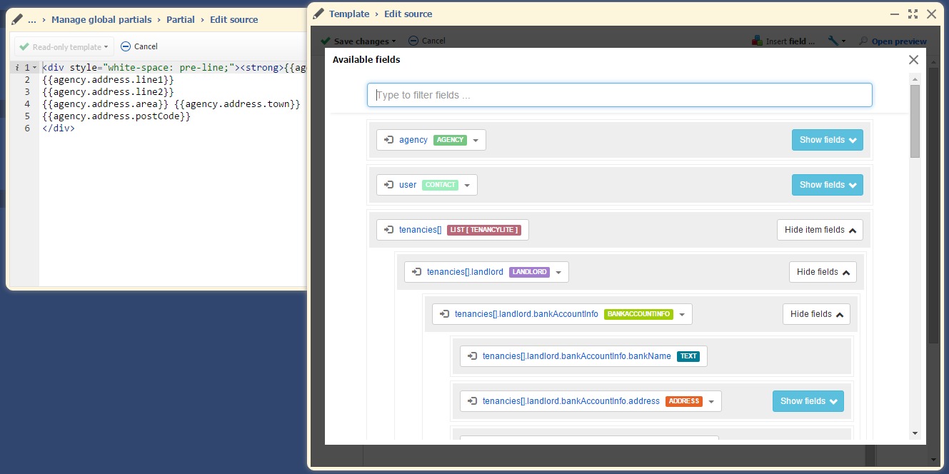 - Dynamic documents including Tenancy agreements that change from Let-Only to Management with a tick box