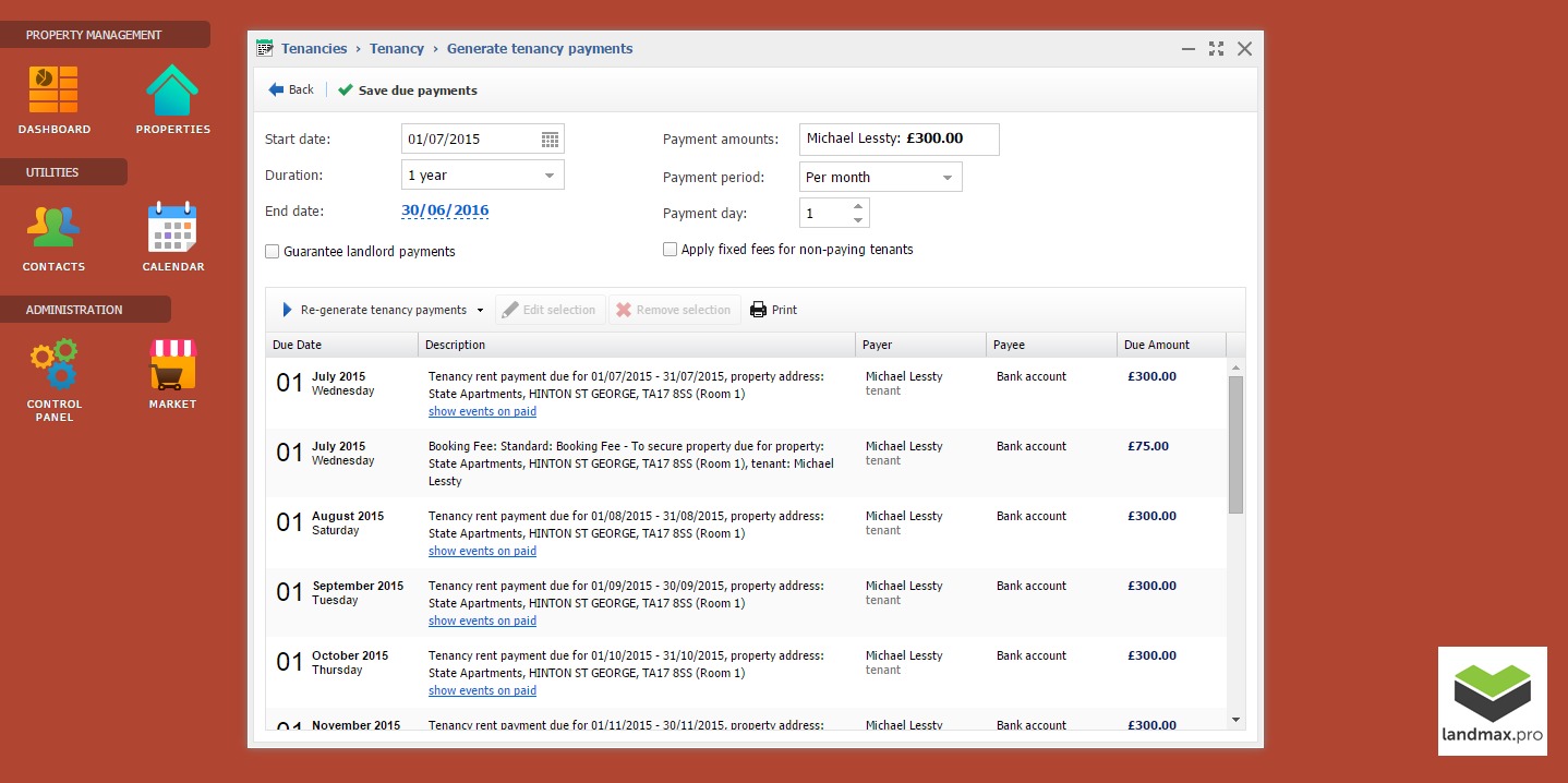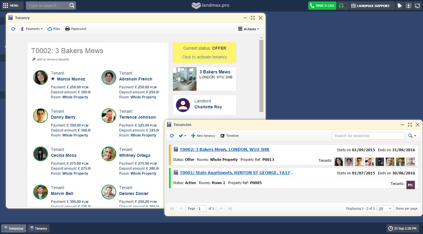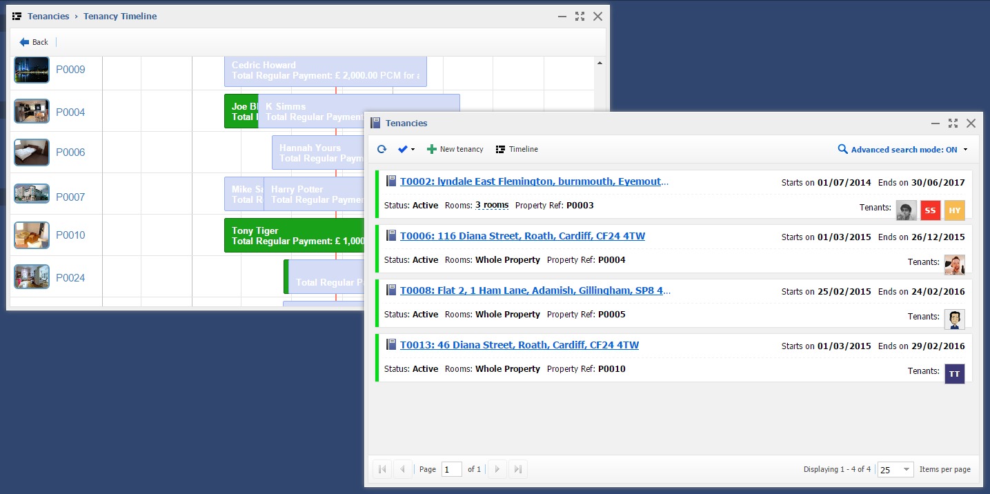 - Tenancy Timeline. See a visual calendar of start and end of tenancies.