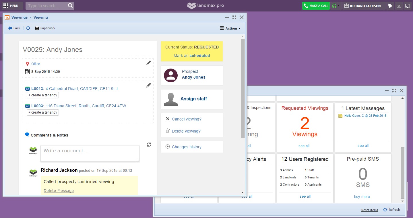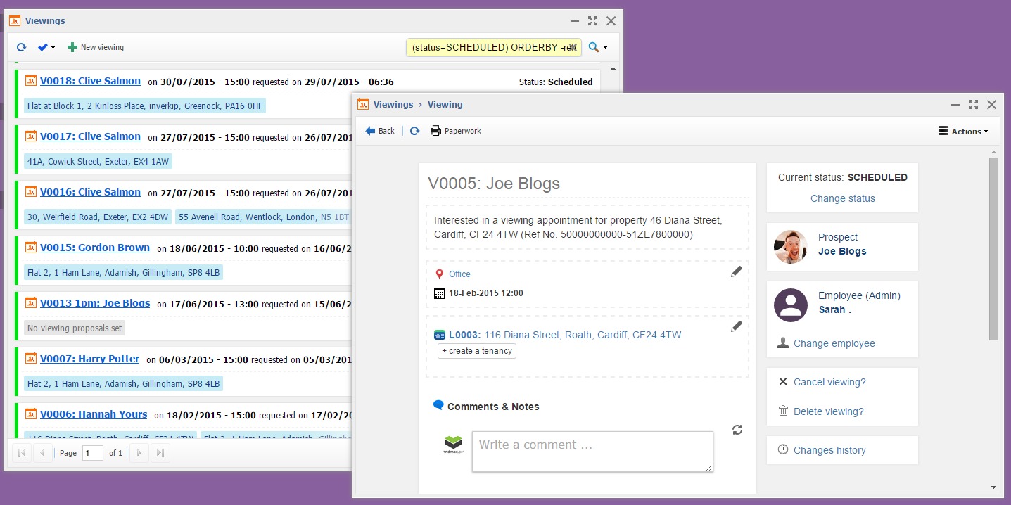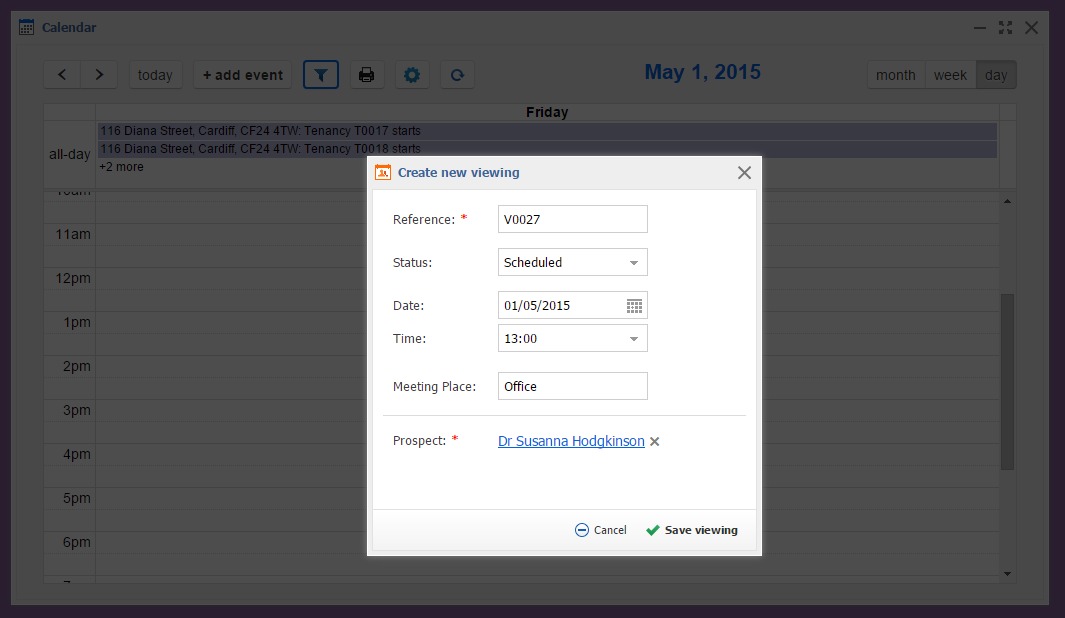 - Central place to manage viewings and prospects