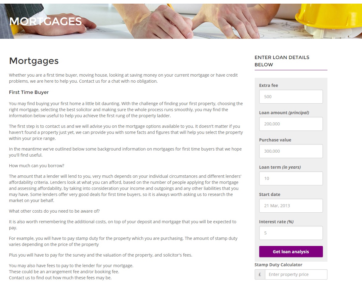 - Built in as a side bar to compliant your mortgage content