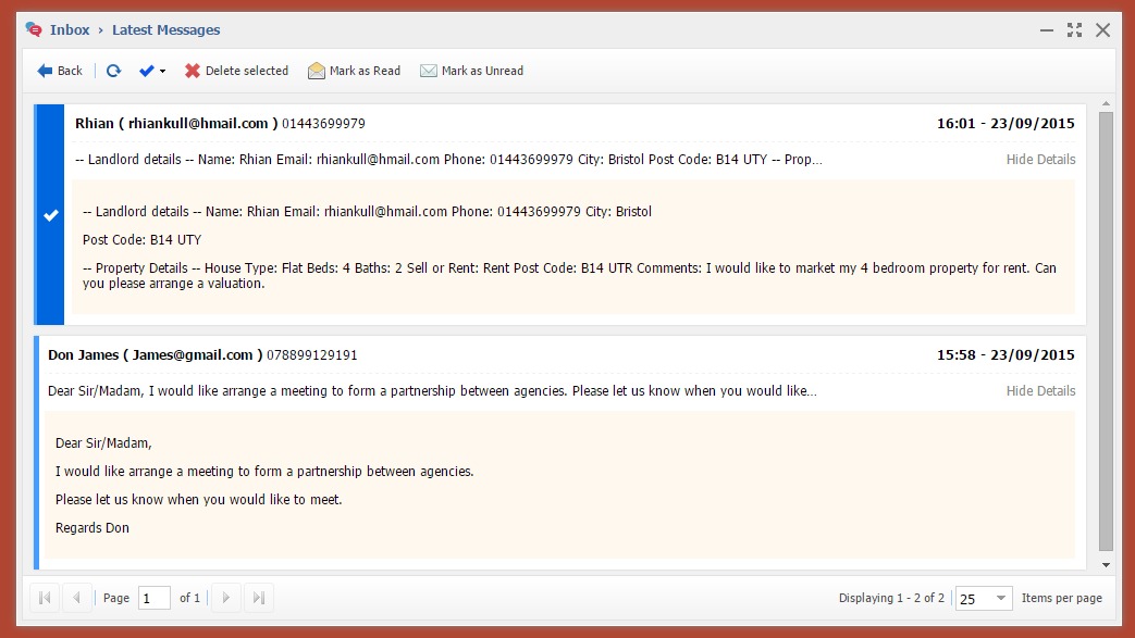 - Contact us messages stored centrally and accessible by all staff