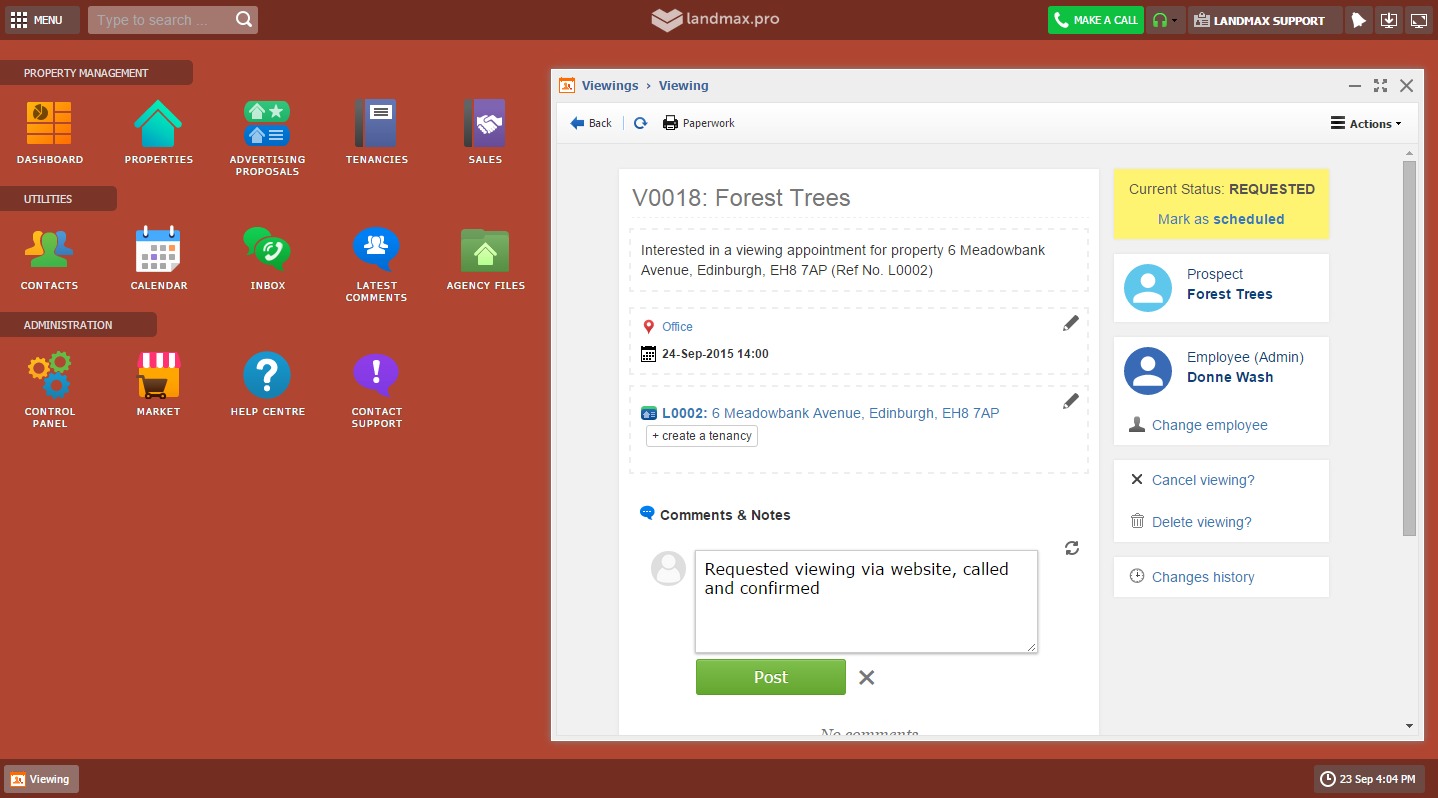 - Client comments attached to viewing